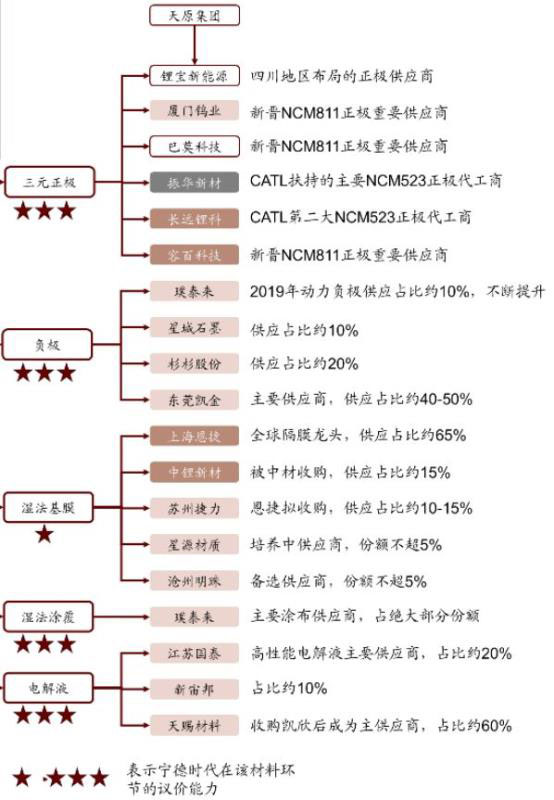 (1)天賜材料:收購凱欣后,成為寧德時代的主力供應(yīng)商,占比約60%;