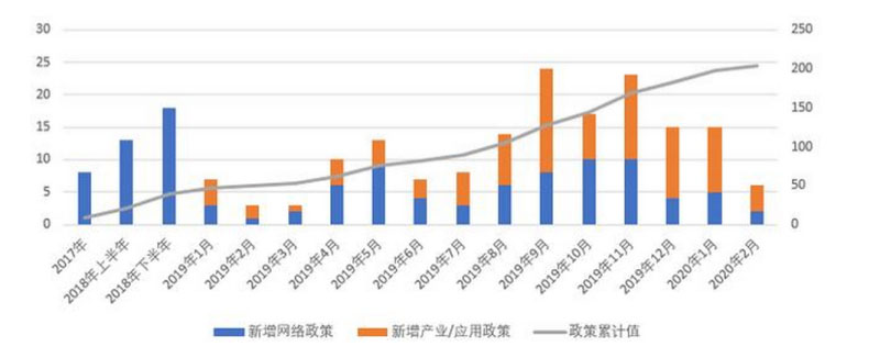 隨著5G上升為我國(guó)重要戰(zhàn)略,全國(guó)各級(jí)政府積極響應(yīng),密集出臺(tái)行動(dòng)計(jì)劃、實(shí)施方案、指導(dǎo)意見等政策文件,為5G發(fā)展?fàn)I造了良好的政策環(huán)境,積極推進(jìn)5G網(wǎng)絡(luò)建設(shè)、應(yīng)用示范和產(chǎn)業(yè)發(fā)展。截至2020年2月底,我國(guó)各省市區(qū)共出臺(tái)5G政策文件累計(jì)達(dá)200余個(gè)。一些5G發(fā)展較快的地區(qū),政府出臺(tái)多項(xiàng)政策支持5G發(fā)展,如廣東、浙江兩省已出臺(tái)各級(jí)5G政策20余個(gè)。