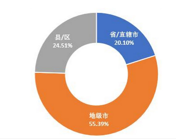 截至2020年2月底,省/直轄市出臺(tái)政策占5G總政策數(shù)量的20.10%,其中廣東、河南和四川各有3個(gè)省級(jí)5G政策文件,上海、北京、山東、河北、湖南、重慶、貴州、黑龍江、江西等省/直轄市各有2個(gè)省級(jí)5G政策文件。地級(jí)市出臺(tái)政策占5G總政策數(shù)量的比重達(dá)55.39%,其中廣東、浙江幾乎每個(gè)地級(jí)市均有5G政策出臺(tái)。縣/區(qū)出臺(tái)政策占5G總政策數(shù)量的24.51%,其中上海的縣/區(qū)級(jí)5G政策達(dá)9個(gè)之多,僅虹口區(qū)就出臺(tái)4個(gè),涵蓋了網(wǎng)絡(luò)建設(shè)、產(chǎn)業(yè)培育、企業(yè)扶持、應(yīng)用創(chuàng)新等多個(gè)方面。各地5G政策發(fā)布情況如圖1所示。
