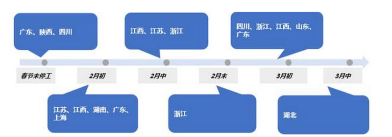 各省市鋰鹽廠開工按時間統(tǒng)計情況