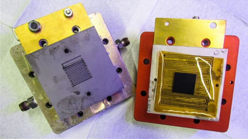 在新電解槽中,改進(jìn)的離子傳導(dǎo)膜(右側(cè)黃色膜)可以使水產(chǎn)生氫氣,而不需要昂貴的催化劑。圖片來(lái)源:YU SEUNG KIM/洛斯·阿拉莫斯國(guó)家試驗(yàn)室