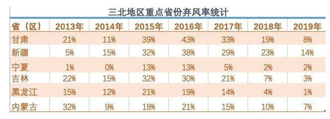 但事實上,在隨后的幾年內(nèi),三北地區(qū)棄風(fēng)限電問題不僅沒有得到解決,反而全面升級。到2016年,甘肅省棄風(fēng)率高達43%,新疆和吉林棄風(fēng)率均超過30%。