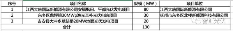 江西省:3個(gè)項(xiàng)目,共1.3GW