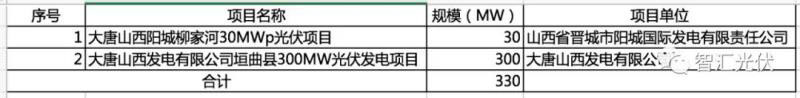 山西省:2個(gè)項(xiàng)目,共0.33GW