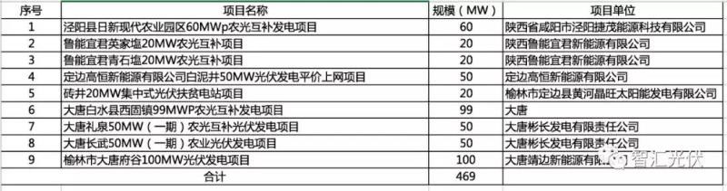 陜西省:9個(gè)項(xiàng)目,共0.47GW