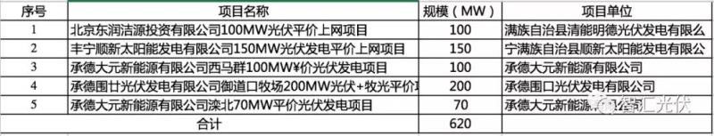 河北省:5個(gè)項(xiàng)目,共0.62GW