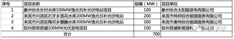 廣西省:4個(gè)項(xiàng)目,共0.7GW