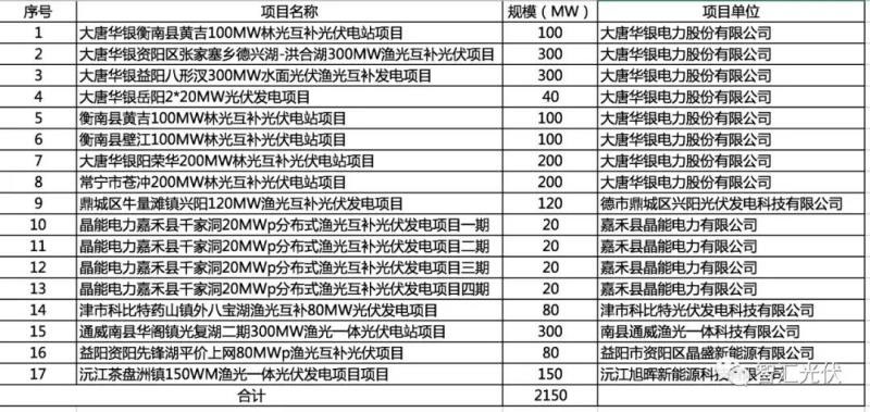 湖南省:17個(gè)項(xiàng)目,共2.15GW