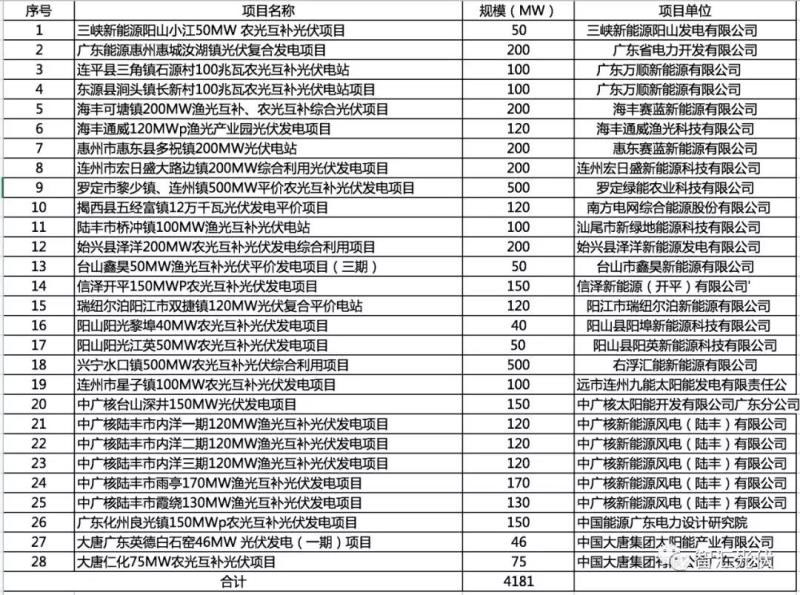 廣東省:28個(gè)項(xiàng)目,共4.181GW