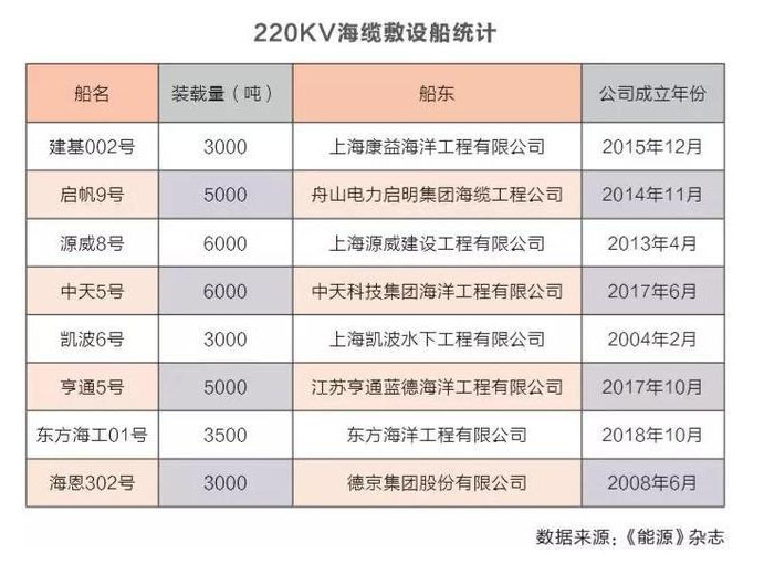 相比之下,海上風(fēng)電施工難度大、工程技術(shù)要求高,海裝船、打樁錘等設(shè)備短板愈加明顯。海上風(fēng)電施工分為基礎(chǔ)施工、吊裝、和海纜敷設(shè)等環(huán)節(jié),對(duì)船只的要求各有不同。《能源》雜志統(tǒng)計(jì),目前中國(guó)境內(nèi)共有32艘左右安裝船,可以用于海上風(fēng)電吊裝和基礎(chǔ)施工;用于敷設(shè)220KV海纜的施工船僅有8艘,并且一半以上施工船裝載量低于5000 噸,如海恩302號(hào)、基建002號(hào)和凱波6號(hào)裝載量在3000噸左右,很快將不適應(yīng)中國(guó)海上風(fēng)電海纜施工要求。