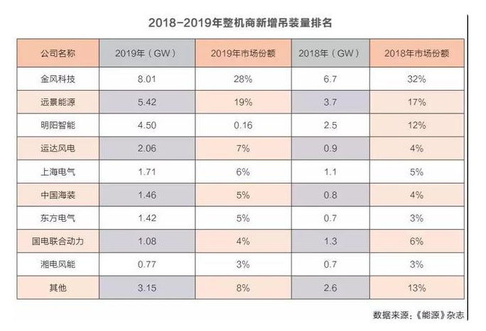 在“搶裝”潮下,風(fēng)電市場(chǎng)由買方轉(zhuǎn)為賣方主導(dǎo),2019年整機(jī)制造企業(yè)訂單規(guī)模大增。
