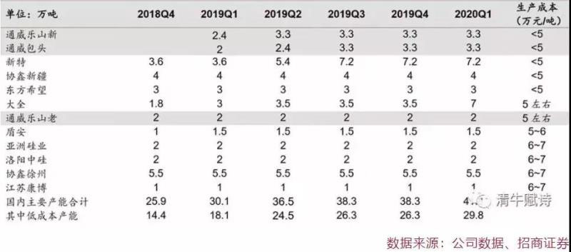 從上圖數(shù)據(jù)可以看到,多晶硅新產(chǎn)能的生產(chǎn)成本大部分可以達(dá)到5萬元/噸以下,其成本優(yōu)勢(shì)在2019年多晶硅市場(chǎng)表現(xiàn)尤為明顯,在價(jià)格一路走低的形勢(shì)下,擁有新產(chǎn)能的多晶硅企業(yè)才能勉強(qiáng)盈利,大部分的老產(chǎn)能只能苦苦支撐,甚至某從事多晶硅業(yè)務(wù)的國(guó)有企業(yè)已經(jīng)計(jì)劃關(guān)閉太陽(yáng)能多晶硅業(yè)務(wù)。