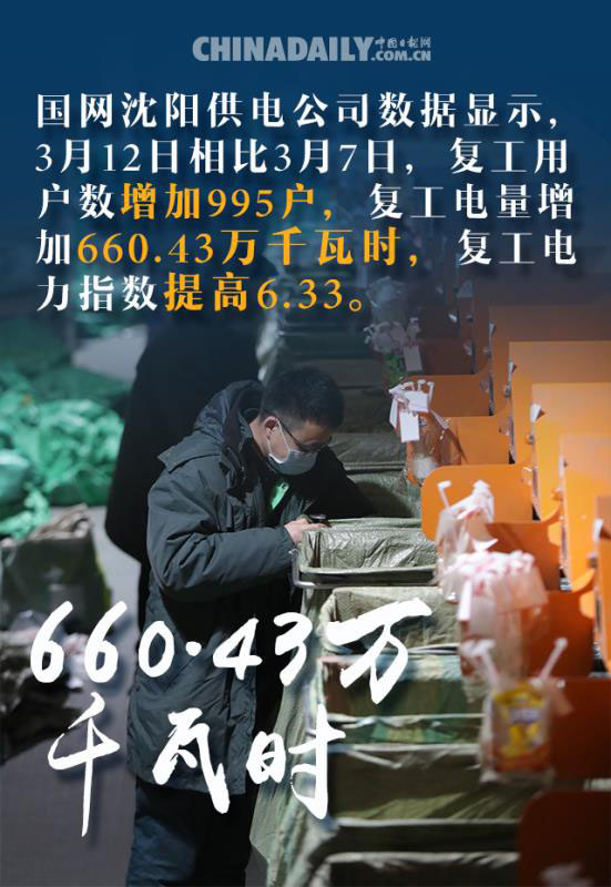 國家發(fā)展改革委3月17日公布最新數(shù)據(jù)顯示,從電網(wǎng)企業(yè)監(jiān)測(cè)的用電情況看,目前有色金屬行業(yè)用電量已達(dá)到去年正常水平;醫(yī)藥、化工、電子行業(yè)用電量已恢復(fù)到正常水平的九成以上;鋼鐵、機(jī)械、紡織行業(yè)用電量恢復(fù)到正常水平的八成以上。鐵路裝車數(shù)已恢復(fù)到正常水平,民航、港口、水運(yùn)均正常運(yùn)營(yíng)。