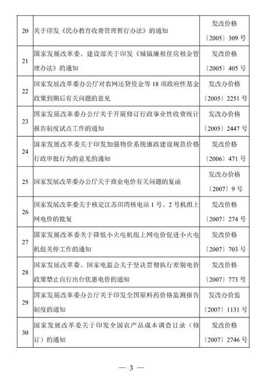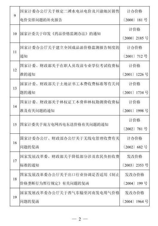 國家發(fā)展改革委決定廢止的價格規(guī)范性文件目錄