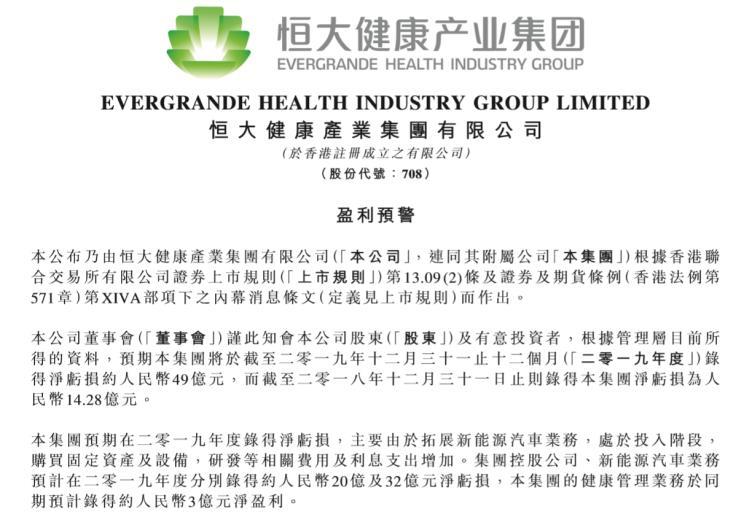 3月22日晚,為造車“買買買”的恒大健康(00708.HK)發(fā)布盈利預(yù)警公告,預(yù)計(jì)2019年度凈虧損49億元,較2018年度進(jìn)一步擴(kuò)大。