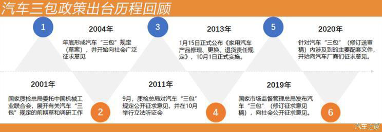 由于種種原因,制定工作曾擱置經(jīng)年,至2011年10月重啟;隨后制定速度大大加快,2012年6月,原國家質(zhì)檢總局局務(wù)會通過《汽車三包規(guī)定》,于2013年1月對外發(fā)布,并于當(dāng)年10月1日正式實(shí)施。