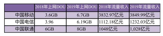 三大運營商傳統(tǒng)業(yè)務(wù)在過去的一年并未有明顯改善,在即時通訊APP及提速降費政策的影響下,運營商流量、語音、短信等業(yè)務(wù)收入全面下降。