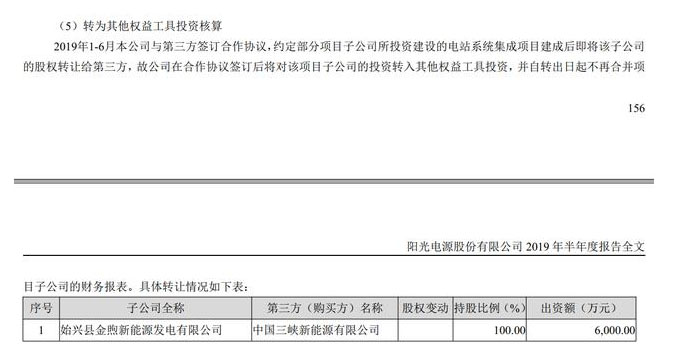 3月24日,新京報(bào)記者梳理陽(yáng)光電源2019年半年報(bào)看到公司與第三方簽訂合作協(xié)議,約定部分項(xiàng)目子公司所投資建設(shè)的電站系統(tǒng)集成項(xiàng)目建成后即將該子公司的股權(quán)轉(zhuǎn)讓給第三方,金煦新能源即為此例。