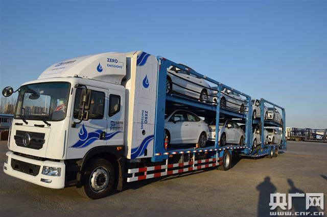 央廣網(wǎng)大連3月26日消息(記者賈鐵生 通訊員江麗欣 盧海軍)日前,世界首款燃料電池重型轎車運(yùn)輸車在大連自貿(mào)片區(qū)開始實地場景路試。據(jù)悉,這款燃料電池重型轎車運(yùn)輸車是基于洺源科技(大連)有限公司聯(lián)合新源動力股份有限公司和東風(fēng)汽車開發(fā)的一款18噸-36噸級燃料電池重卡平臺研制生產(chǎn)的。