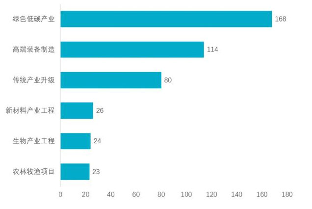 ▲圖2.3:江西省各投資領(lǐng)域的項(xiàng)目數(shù)量