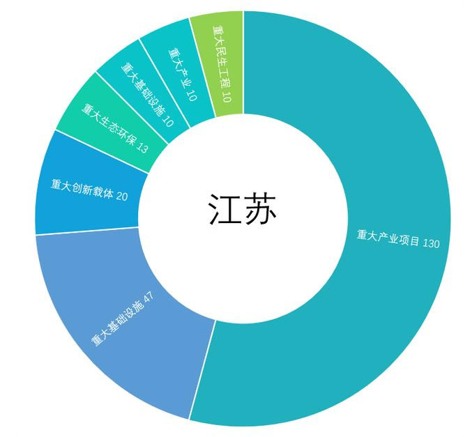 其中,重大產(chǎn)業(yè)項(xiàng)目又分為戰(zhàn)略新型產(chǎn)業(yè)、先進(jìn)制造業(yè)、現(xiàn)代服務(wù)業(yè)和現(xiàn)代農(nóng)業(yè)四個(gè)小分類。其中,以新一代信息技術(shù)、高端裝備、生物、新材料為主的戰(zhàn)略新型產(chǎn)業(yè)項(xiàng)目數(shù)量達(dá)到70個(gè),是江蘇省投資力度最大領(lǐng)域。