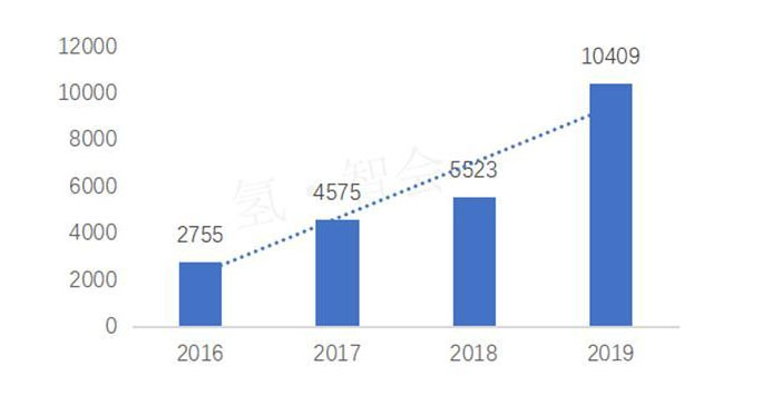 根據(jù)中國汽車工業(yè)協(xié)會(huì)最新公布數(shù)據(jù)統(tǒng)計(jì),2019年中國共銷售2737輛燃料電池汽車,同比增長79%。從2016年到2019年,國內(nèi)燃料電池汽車銷量逐年增加。目前,國內(nèi)氫燃料電池汽車保有量達(dá)6165輛,已達(dá)成《節(jié)能與新能源汽車技術(shù)路線圖》中到2020年實(shí)現(xiàn)5000輛燃料電池汽車規(guī)模的階段性目標(biāo)。
