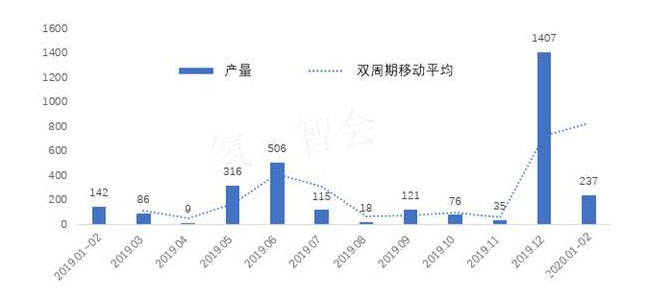 圖表3 2019年1月-2020年2月FCEV產(chǎn)量