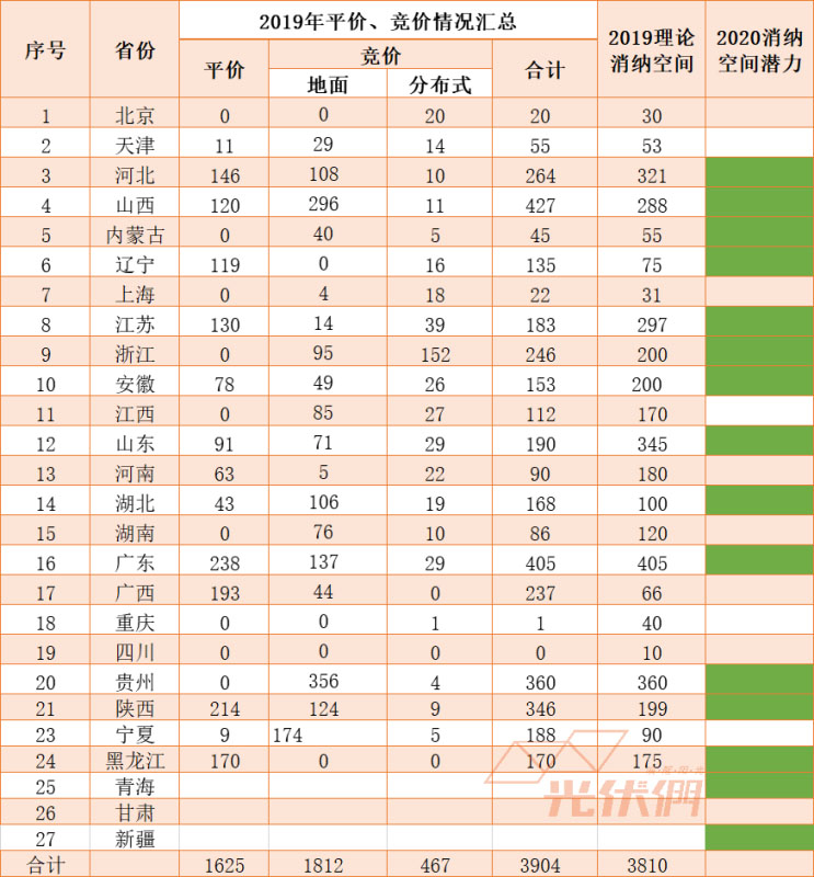 備注:2019年理論消納空間綜合國網(wǎng)、南網(wǎng)相關(guān)報告,供參考;標注綠色的為2020年消納空間接近或有望超過1GW的省份。