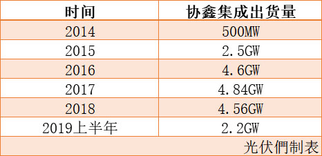 事實上,當前的協鑫集成狀況令人擔憂。光伏們統(tǒng)計了協鑫集成2014年以來出貨量。在以晶科、晶澳等為第一梯隊的組件企業(yè)出貨量逐年攀升的同時,協鑫集成從2016年開始,組件出貨量一直維持在4GW左右。