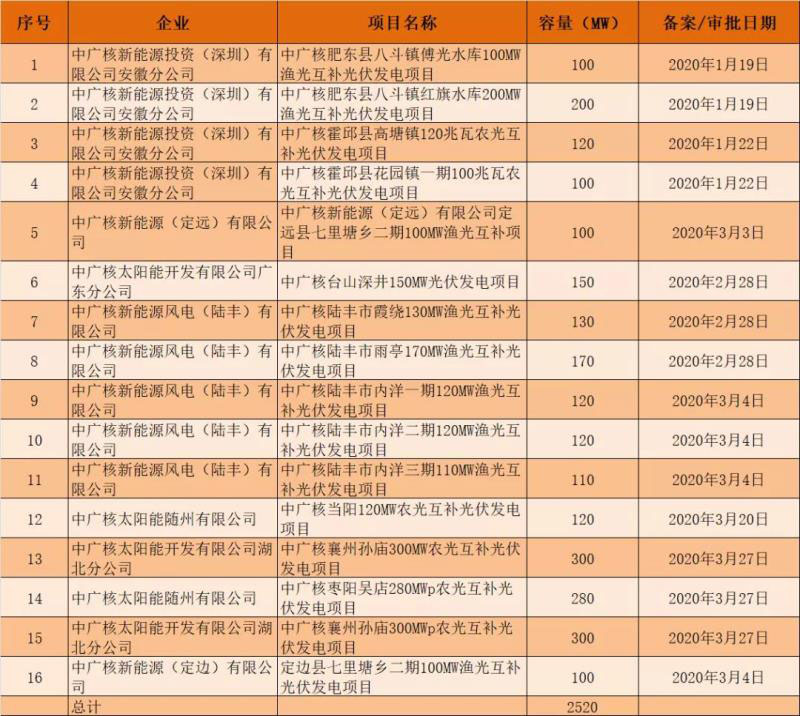 另外,2020年中廣核在光伏領域的發(fā)力程度也值得注意。根據光伏們統(tǒng)計的2020年光伏項目備案信息顯示,截至到3月27日,中廣核(包括中廣核太陽能和中廣核新能源)已在全國各省備案了2520MW光伏項目。