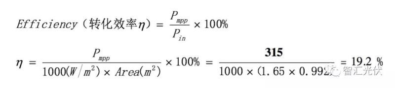 用組件功率除以組件面積,計(jì)算出轉(zhuǎn)換效率;
