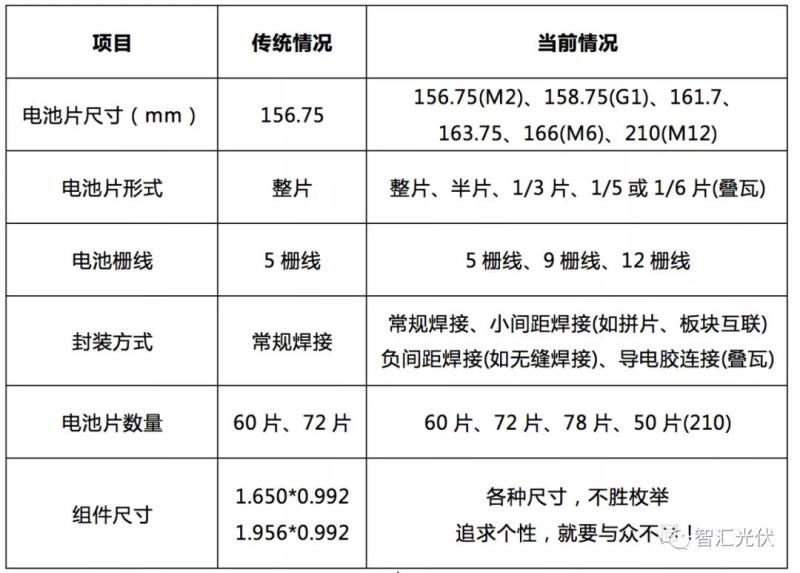 傳統(tǒng)組件電池片尺寸、形式、封裝方式都比較單一,因此無論哪家企業(yè)的組件,基本都是兩種標(biāo)準(zhǔn)尺寸;