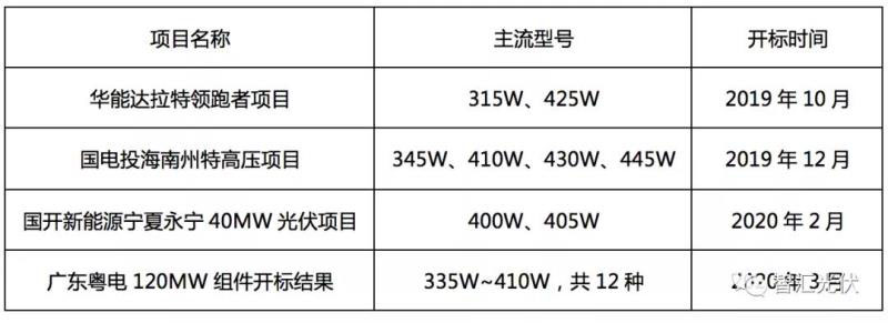 而在近期一些項(xiàng)目的開標(biāo)文件中,組件型號(hào)更是五花八門。整理了近期幾個(gè)較大的組件招標(biāo),如下表所示。