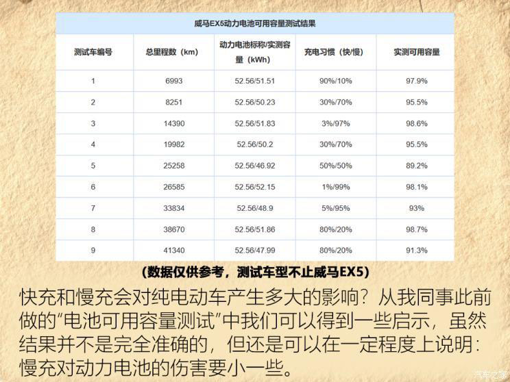 測(cè)試結(jié)果顯示,日??斐浔壤叩能囕v與慢充比例高的車輛,二者動(dòng)力電池可用容量會(huì)有差別,但差異并不明顯,也不至于成為普遍現(xiàn)象。測(cè)試結(jié)果比預(yù)想的好,這在一定程度上要得益于純電動(dòng)車電控系統(tǒng)的充電邏輯,即便利用快充充電,我們也能發(fā)現(xiàn)充電起始和末端的功率較低,這正是為了保護(hù)動(dòng)力電池而設(shè)計(jì)的邏輯。(《充電習(xí)慣影響大 威馬/小鵬電池容量測(cè)試》、《3年會(huì)縮水多少?汽車之家電池容量測(cè)試》)