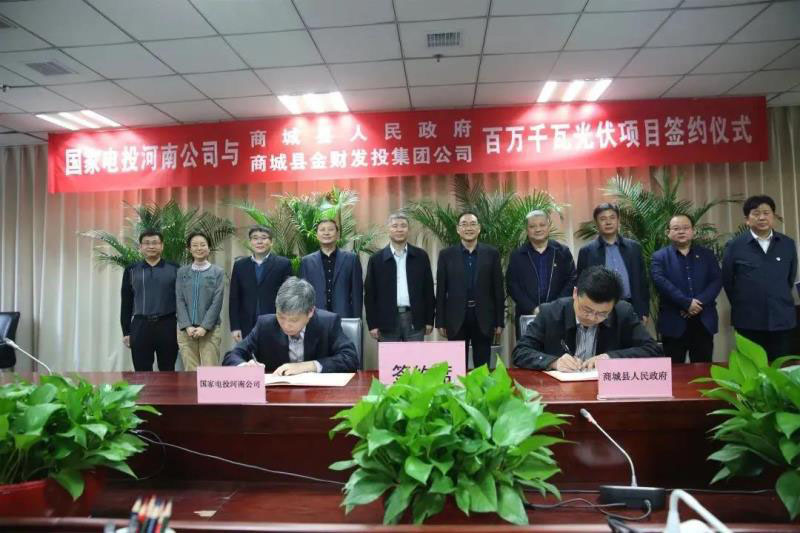 3月26日,國家電投集團河南電力有限公司(以下簡稱“國家電投河南公司”)與河南省信陽市商城縣人民政府就合作開發(fā)商城縣百萬千瓦光伏項目舉行會談并簽約。