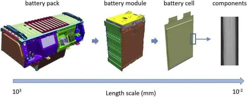 發(fā)展方向:開發(fā)新型電池材料(難點:大多數(shù)目前會影響電池性能,因此應(yīng)考慮取舍。例如,水性電解質(zhì)是不可燃的,但是具有狹窄的電化學(xué)穩(wěn)定性窗口,而固態(tài)電池具有較高的機械剛度,但是具有較高的界面阻抗和較差的循環(huán)穩(wěn)定性);需配備一個或多個安全功能,包括保險絲,通風(fēng)孔,電流中斷裝置以及用于監(jiān)視電池電壓和溫度的電池管理系統(tǒng);建立有效的計算模型(難點:在一個模型中耦合多個物理過程;準(zhǔn)確地測量和建模復(fù)雜的材料特性;將仿真從組件級別擴展到包裝級別),更經(jīng)濟地預(yù)測不同條件下的電池故障,這在系統(tǒng)電池設(shè)計中變得至關(guān)重要。