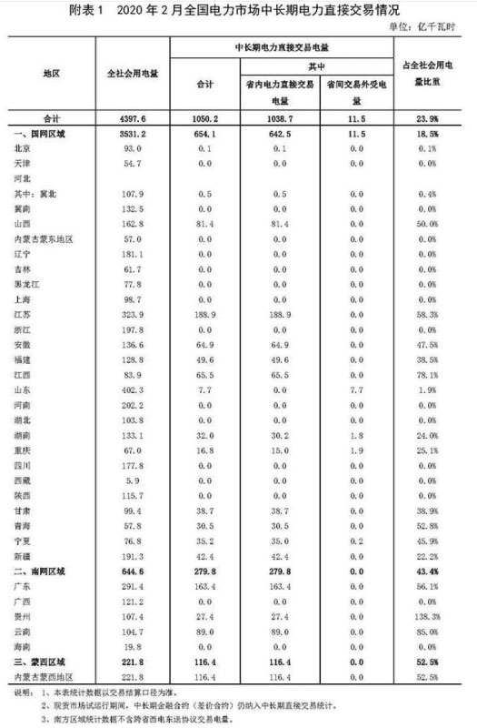 (3)指符合市場(chǎng)準(zhǔn)入條件的電廠和終端購(gòu)電主體通過(guò)自主協(xié)商、集中競(jìng)價(jià)等直接交易形式確定的電量規(guī)模,包括省內(nèi)電力直接交易電量和省間電力直接交易(外受)電量。以交易結(jié)算口徑統(tǒng)計(jì)。