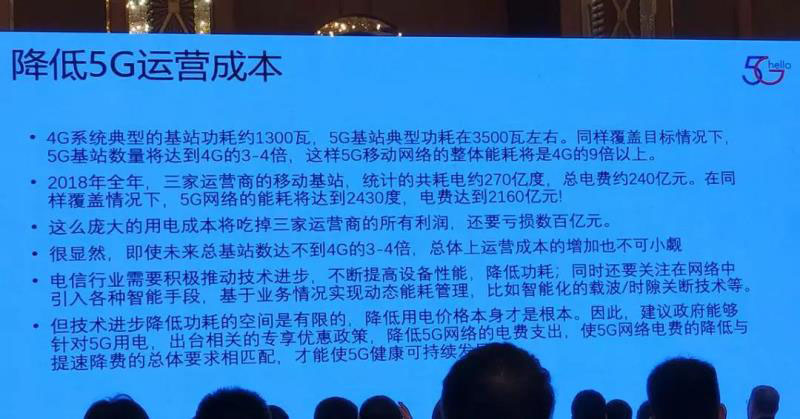 5G基站的功耗遠(yuǎn)遠(yuǎn)大于4G基站,目前大約是3~3.5KW,約是4G基站的2~3倍。電費(fèi)將是5G時(shí)代運(yùn)營(yíng)商最不可忽視的現(xiàn)實(shí)威脅。