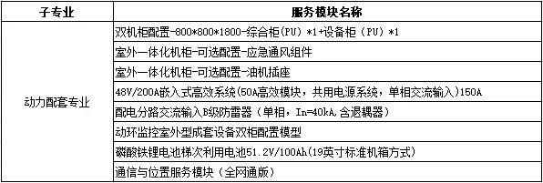根據(jù)不同的基站配置,所需的動(dòng)力配套設(shè)備數(shù)量和規(guī)格也有很大不同。下表是動(dòng)力配套相關(guān)設(shè)備設(shè)施的一個(gè)范例: