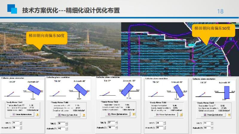 在精細(xì)化設(shè)計(jì)方面,惠星建議企業(yè)做方案時(shí)應(yīng)考慮精細(xì),對(duì)于地形比較復(fù)雜地區(qū),包括對(duì)各個(gè)方位角的調(diào)整、損失輻射量比選、發(fā)電量比選都需進(jìn)行綜合情況考慮。