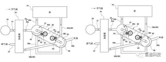 除了本田的陰極回路設(shè)計(jì),現(xiàn)代汽車的相關(guān)專利中也有一項(xiàng)組合陰極閥設(shè)計(jì),可以在實(shí)現(xiàn)密閉陰極回路、降低尾排氫氣濃度功能的同時(shí),控制電堆關(guān)機(jī)時(shí)的水含量。