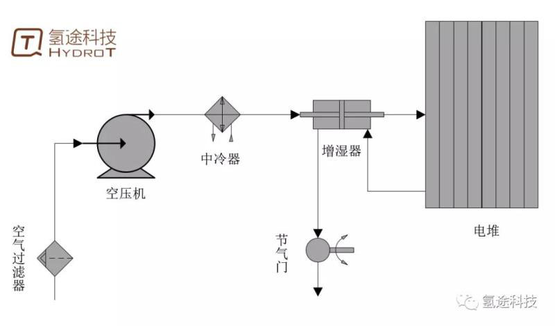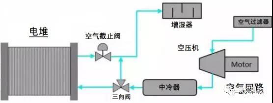 此外,對于目前采用離心式空壓機(jī)的系統(tǒng),還可令其在電堆功率較低時(shí),維持較大的流量,并通入旁通路,可以有效的避免空壓機(jī)喘振現(xiàn)象的出現(xiàn)。
