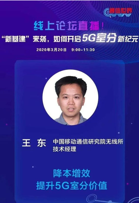 3月20日,通信世界全媒體特策劃5G室分專題線上研討,邀請運營商、設(shè)備商、服務(wù)提供商等,從技術(shù)、網(wǎng)絡(luò)建設(shè)等角度進行深入討論。在會上,中國移動通信研究院無線所技術(shù)經(jīng)理王東介紹了5G室分“三高一不夠”的挑戰(zhàn),并基于目前5G室內(nèi)覆蓋的問題和挑戰(zhàn),提出3個發(fā)展方向以開展5G室內(nèi)覆蓋建設(shè)。