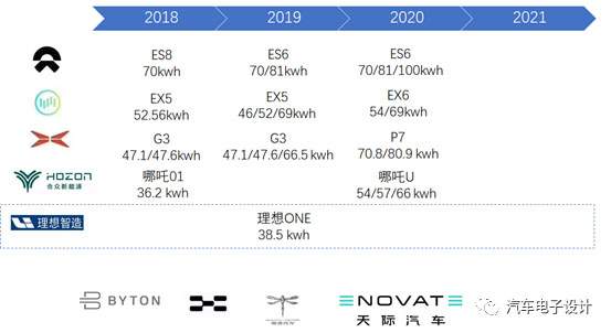這里還是專注于頭部的幾個企業(yè),包括蔚來、威馬、小鵬、合眾和理想等在產(chǎn)量和銷量數(shù)量上達(dá)到一定規(guī)模的來看。當(dāng)然分析的重點是基于50kWh和下一代70-80kWh的電池系統(tǒng)。