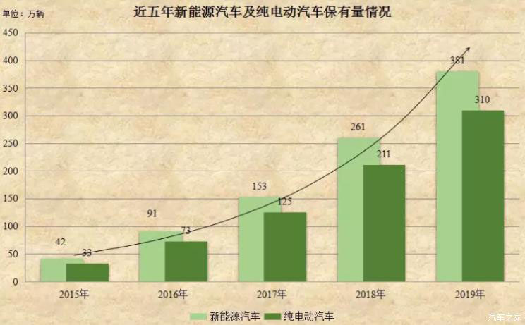 據(jù)公安部統(tǒng)計(jì),截至2019年底,全國(guó)新能源汽車保有量達(dá)381萬(wàn)輛,占汽車總量的1.46%,與2018年底相比,增加120萬(wàn)輛,增長(zhǎng)46.05%。其中,純電動(dòng)汽車保有量310萬(wàn)輛,占新能源汽車總量的81.19%。新能源汽車增量連續(xù)兩年超過(guò)100萬(wàn)輛,呈快速增長(zhǎng)趨勢(shì)。(文/汽車之家 宋愛(ài)菊)