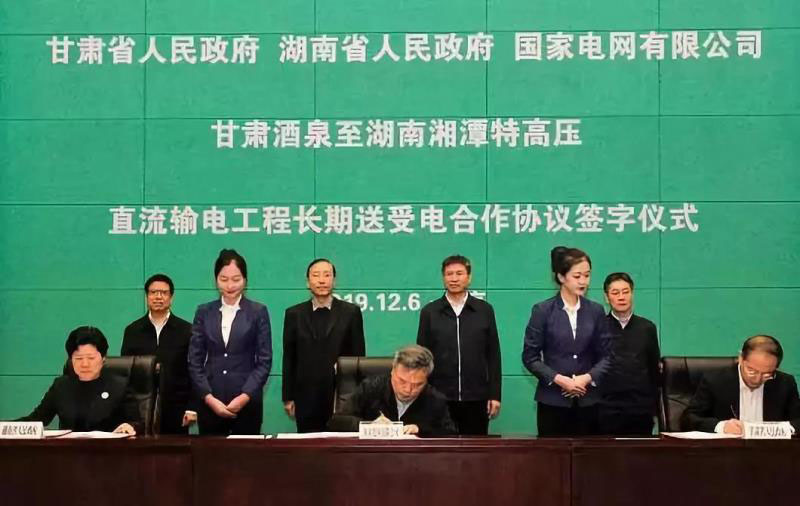 12月6日,甘肅酒泉至湖南湘潭特高壓直流工程長期送受電合作協(xié)議簽訂儀式在京舉行。國家電網(wǎng)有限公司和甘肅、湖南兩省政府三方合作協(xié)議的簽訂,是深入貫徹落實習近平總書記“四個革命、一個合作”能源安全新戰(zhàn)略的積極行動,將進一步提升輸電通道利用效率,更好服務(wù)經(jīng)濟社會發(fā)展。