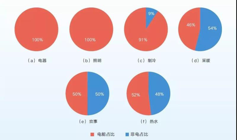 圖6 建筑部門(mén)六大用能場(chǎng)景2050年電能占比