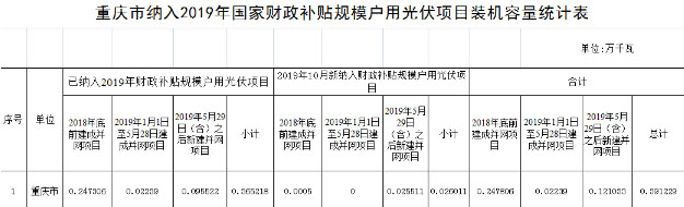 1.重慶市納入2019年國家財政補貼規(guī)模戶用光伏項目裝機容量統(tǒng)計表.xl