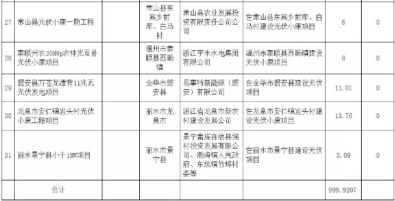 近日,浙江省發(fā)改委官方網(wǎng)站發(fā)布了“浙江省發(fā)展改革委關(guān)于2017年度全省普通地面光伏電站建設(shè)調(diào)整計(jì)劃公開征求意見的公告”。公告顯示:經(jīng)研究擬對(duì)2017年度全省普通地面光伏電站建設(shè)計(jì)劃進(jìn)行調(diào)整。納入調(diào)整計(jì)劃的項(xiàng)目條件是已列入我省2017年度和2018年度計(jì)劃及光伏小康工程且在2018年12月31日前并網(wǎng)的。調(diào)整項(xiàng)目電價(jià)按國家相應(yīng)的價(jià)格政策和企業(yè)競(jìng)爭電價(jià)承諾執(zhí)行。共涉及31個(gè)項(xiàng)目,整體規(guī)模近1GW。