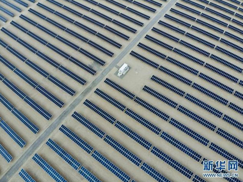 在位于青海省海西蒙古族藏族自治州格爾木市的光伏園區(qū)內(nèi),占地771公頃總裝機規(guī)模500兆瓦的三峽新能源格爾木500MW光伏領跑者項目基地,一排排單晶硅太陽能電池組件整齊劃一。